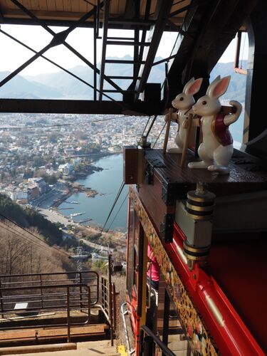 夕方には河口湖駅に戻りたかったので、名残惜しいけどそろそろ下山。 上る時には気がつかなかったけど、ロープウェイの籠にはこんな可愛いウサギさんが! 駅に戻る前に気になっていたお店へ。 富士山の形をした可愛いFUJIYAMA COOKIEさん お土産に数枚購入。…