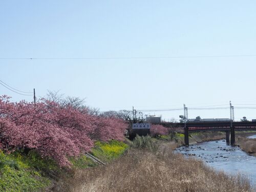 川沿いの土手に菜の花 河津駅を降りて桜並木に向かって歩いていくと土手にぶつかるのですが、土手に菜の花が咲いていてピンクと黄色でとても綺麗な景色が広がります。 桜通りの桜の下にも菜の花 土手と反対側の通り沿いにも菜の花の花壇があり、桜と一緒に満…