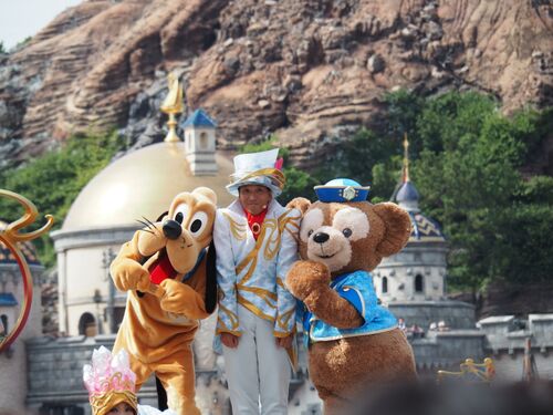 ゴンドラでシーの景色を楽しんだ後はクリスタル・ウィッシュ・ジャーニーの場所取り。 午前9時半の時点でリドは座りと立ち見が少し残っている状態。ミッキー広場は立ち見最前と座りも10列から15列くらいまではうまってる感じ。 友達がドナルドとグーフィーが…