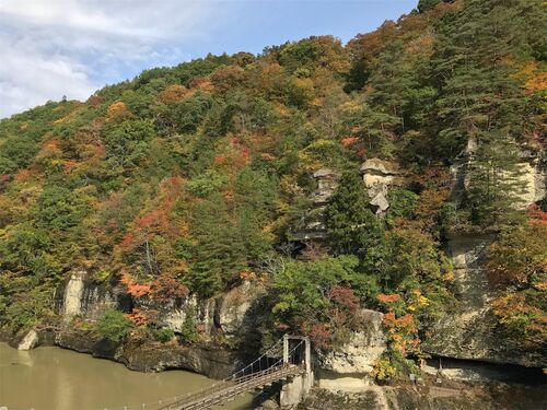 塔のへつりへ到着 大内宿を出て次なる目的地、塔のへつりへ へつりとは、地元の言葉で断崖という意味だそうで、断崖の壁面には塔のような岩が立ち並ぶことから、塔のへつりと言うそうです。 確かに言われてみれば塔のよう! 確かに急斜面に塔のような岩で結…