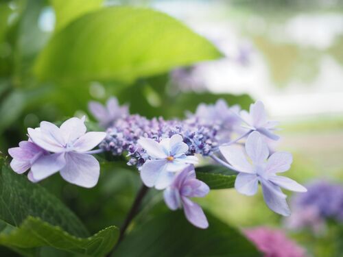 紫陽花の遊歩道 水元公園を入って菖蒲園に行くには水元大橋を渡って行くのですが、その水元大橋を渡る手前にある道にたくさんの紫陽花が咲いています もりもりな感じです この場所の遊歩道は公園側と車道側でかなり高さが違うため、紫陽花はこの斜面と車道側…